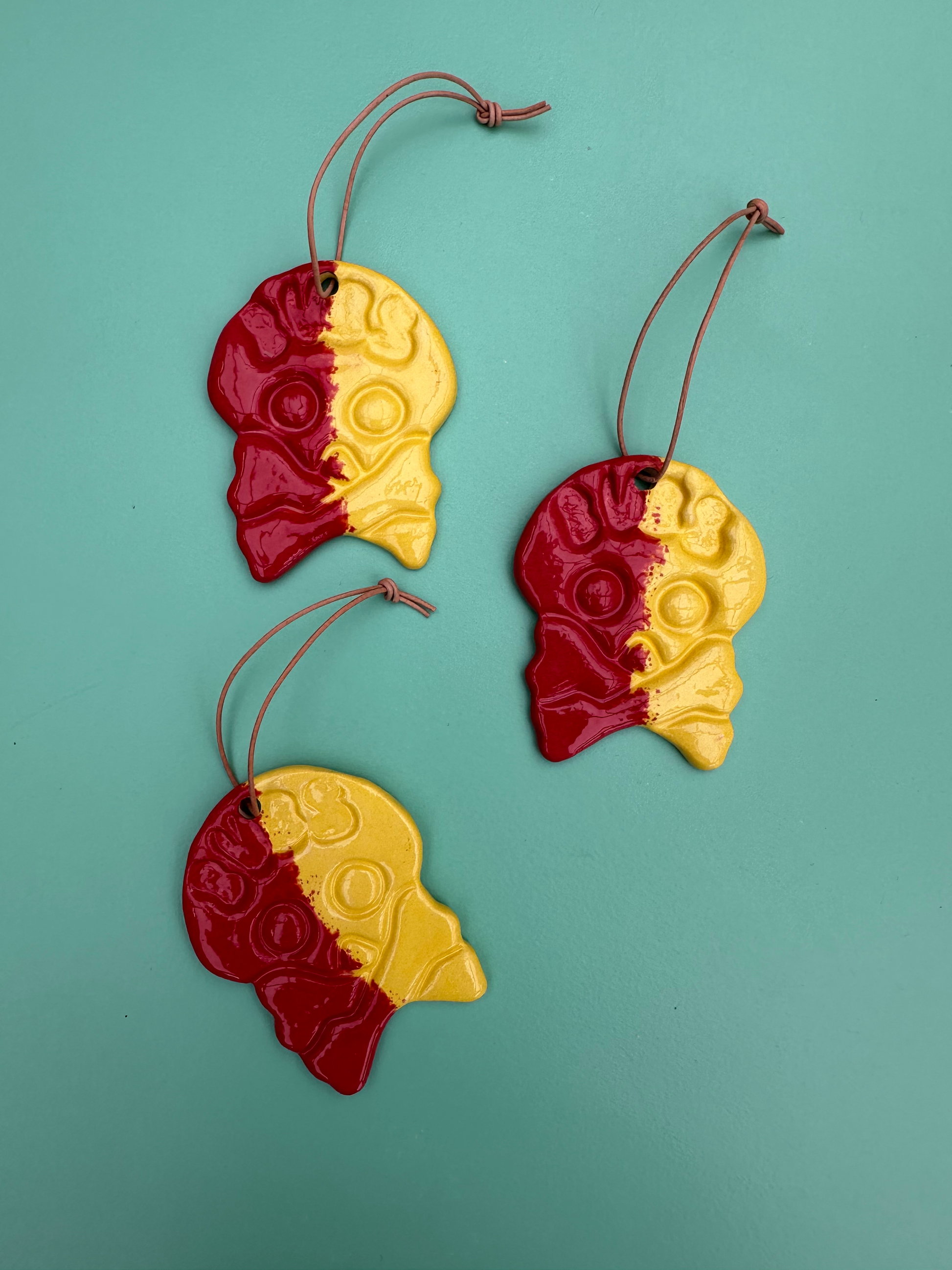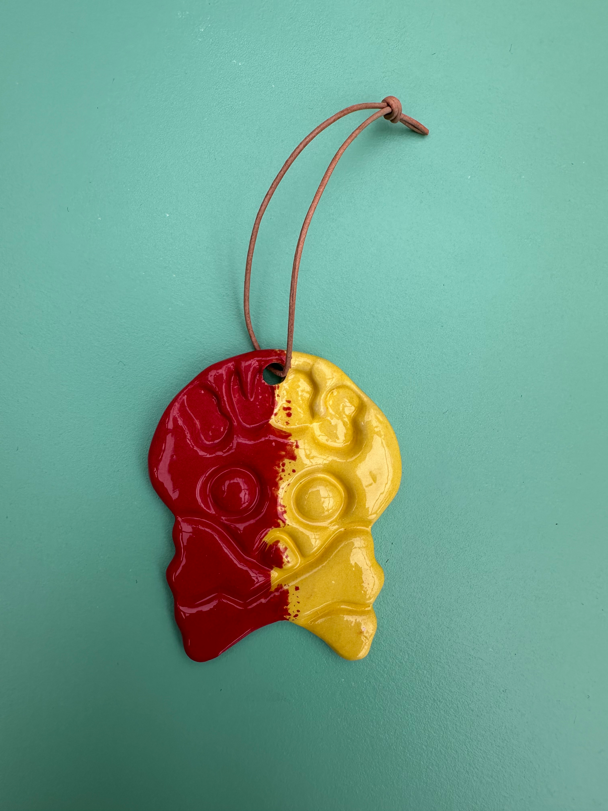 Form og glasering kan variere fra ophæng til ophæng. Det er en del af charmen ved håndmalet keramik.