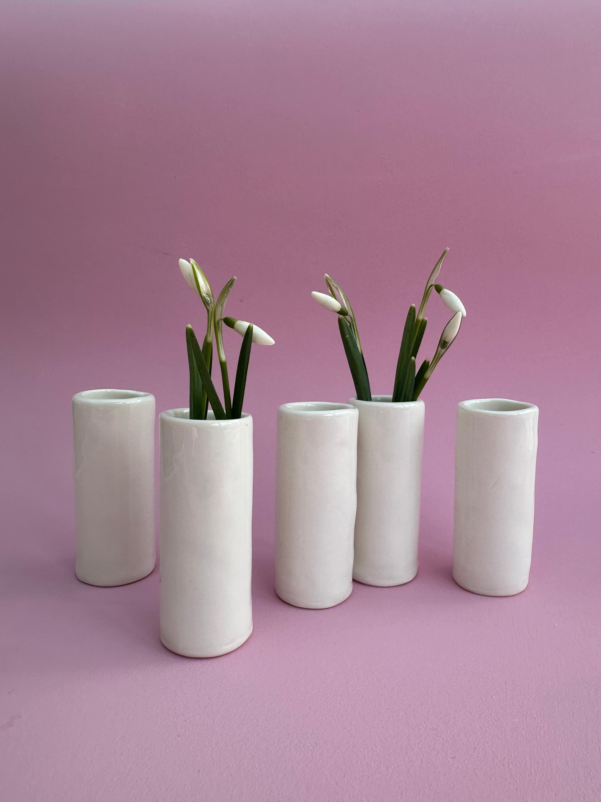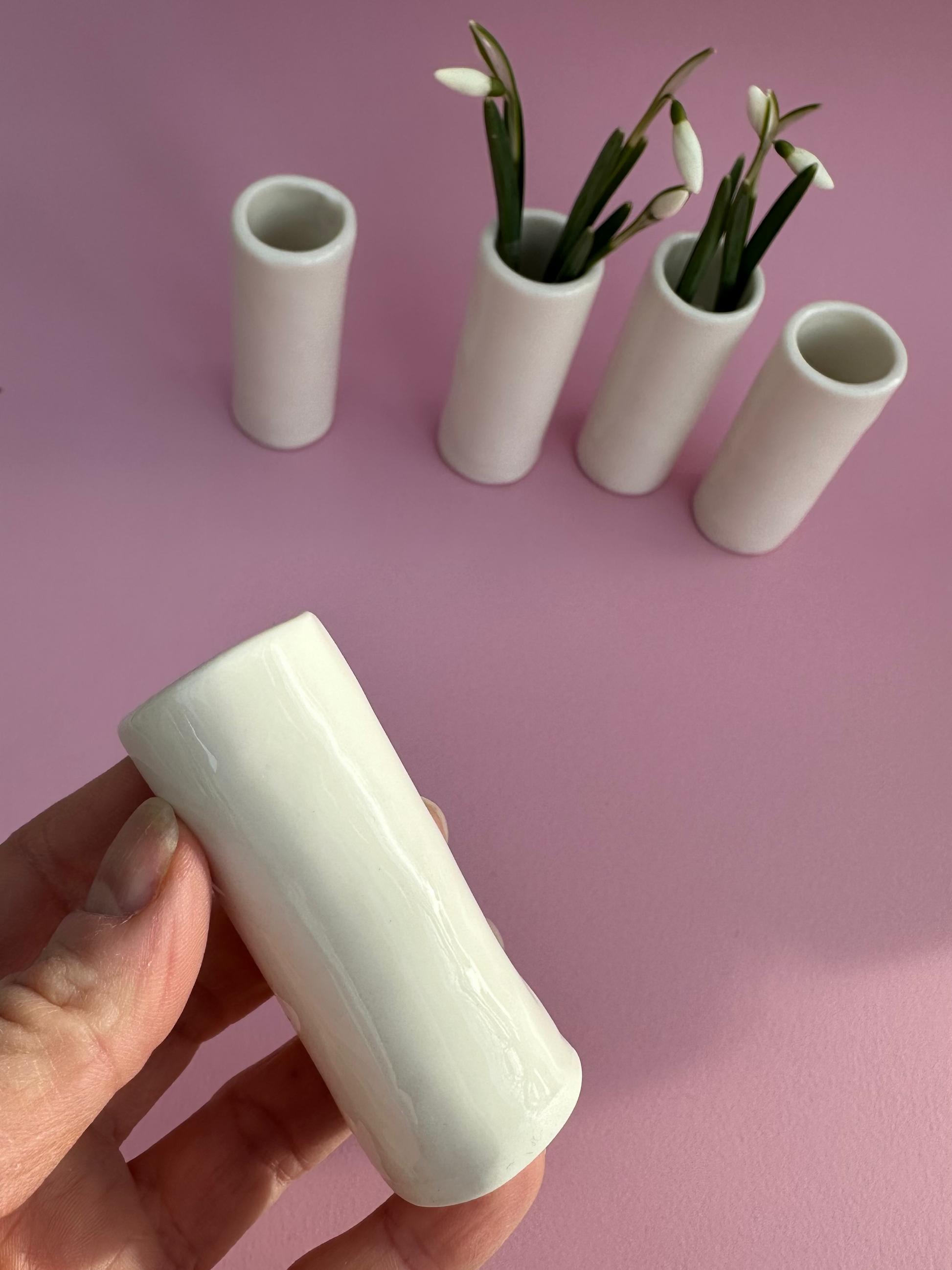 Fin lille vase til de første forårsblomster i haven, eller de lidt kortstilkede blomster barnet plukker.