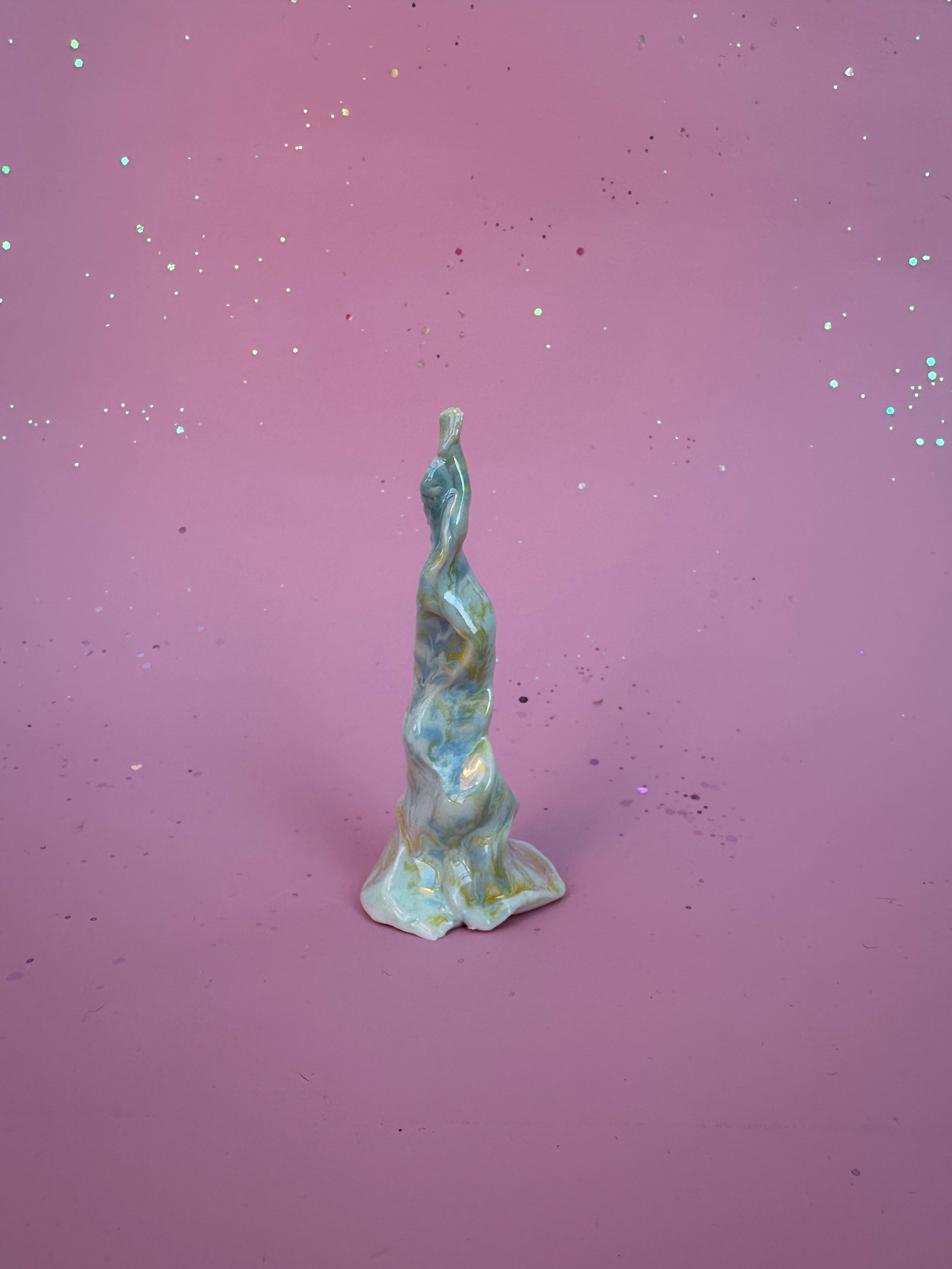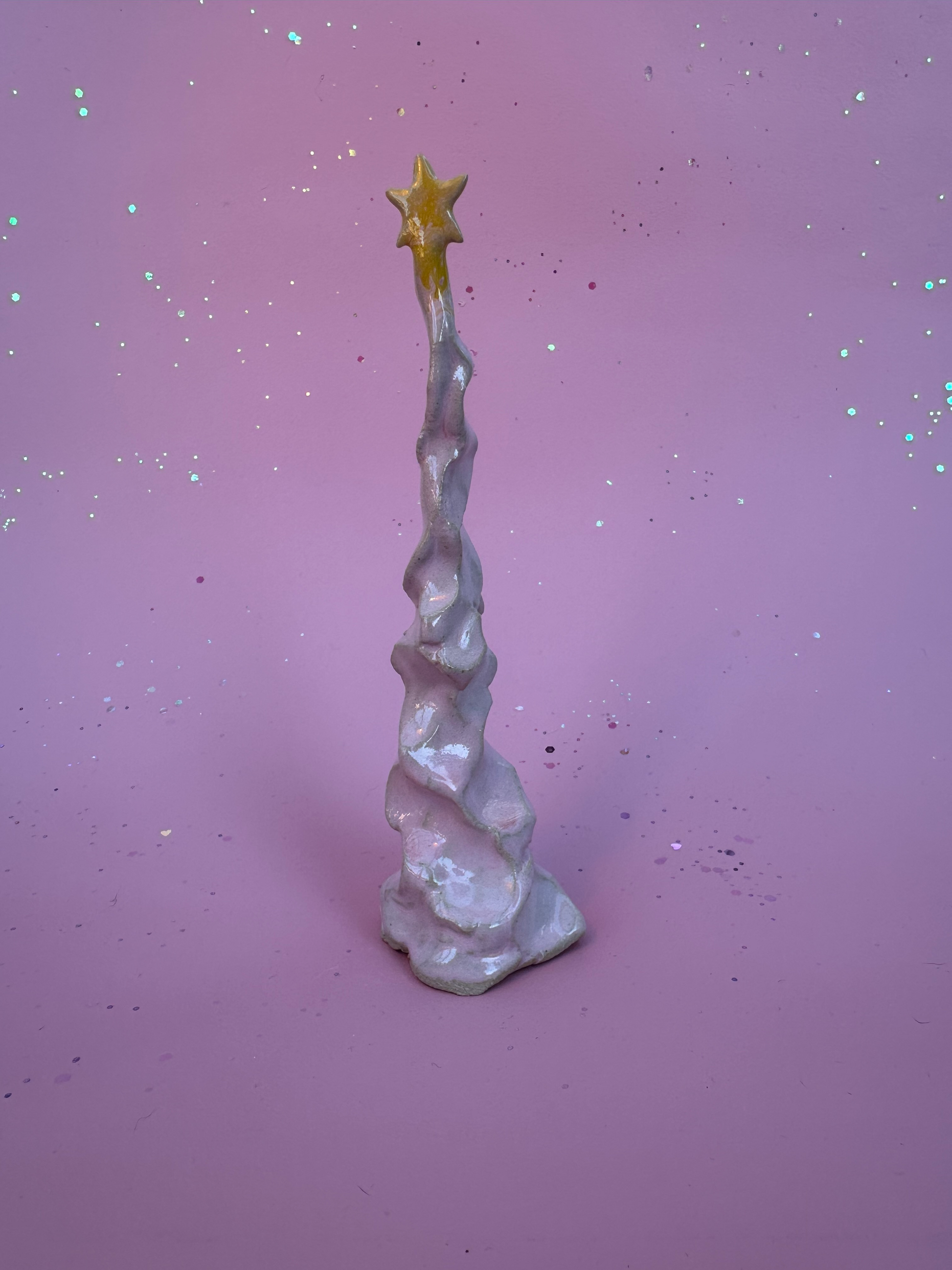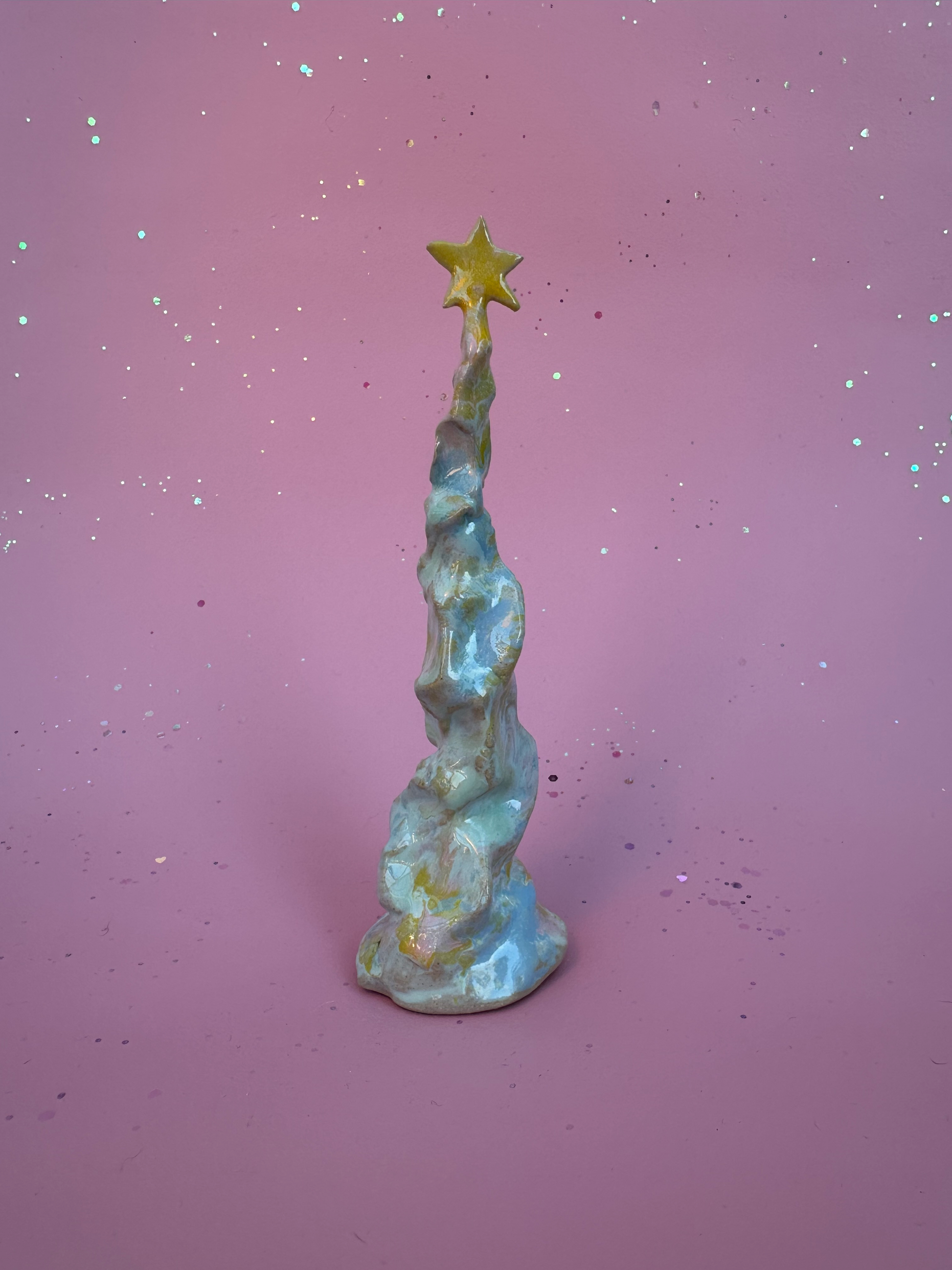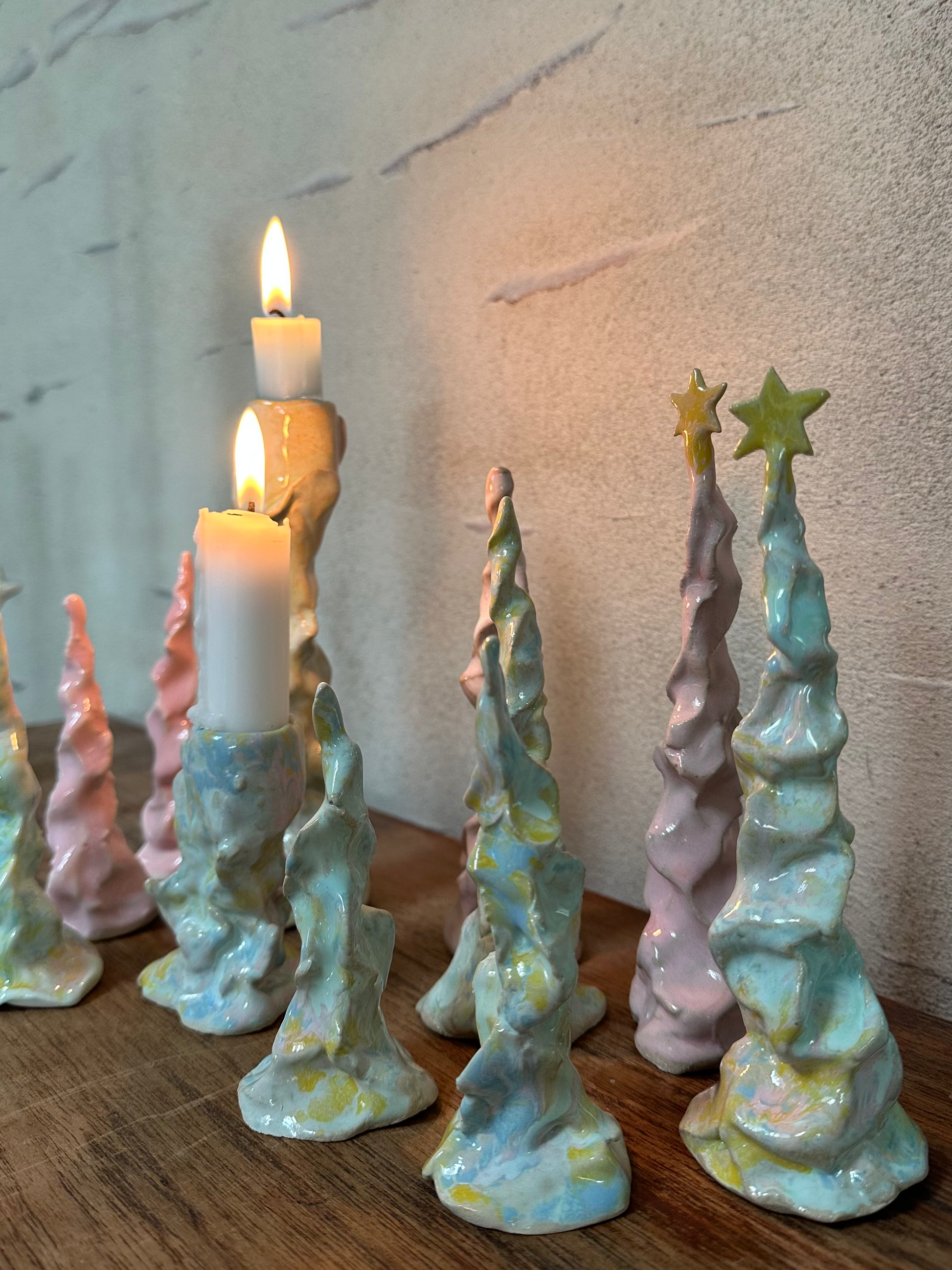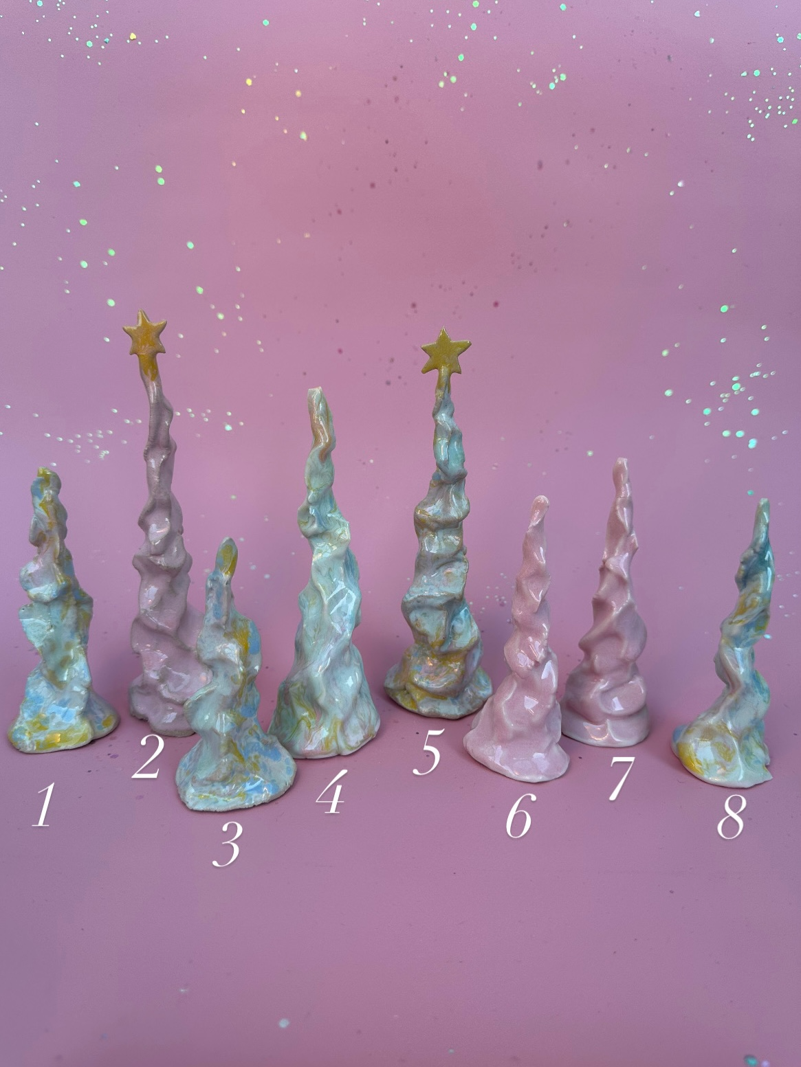 Alle træer er formet i hånden og glaseret i de i rosa og changerende farver.
