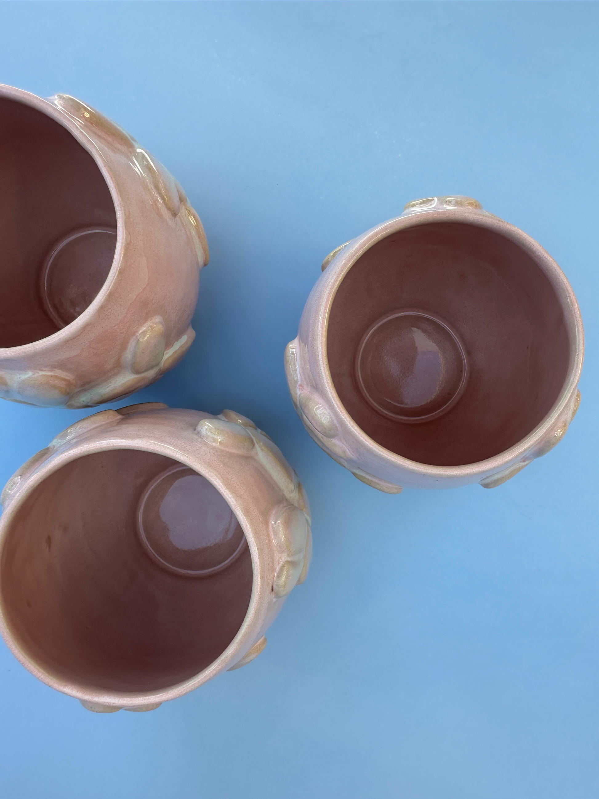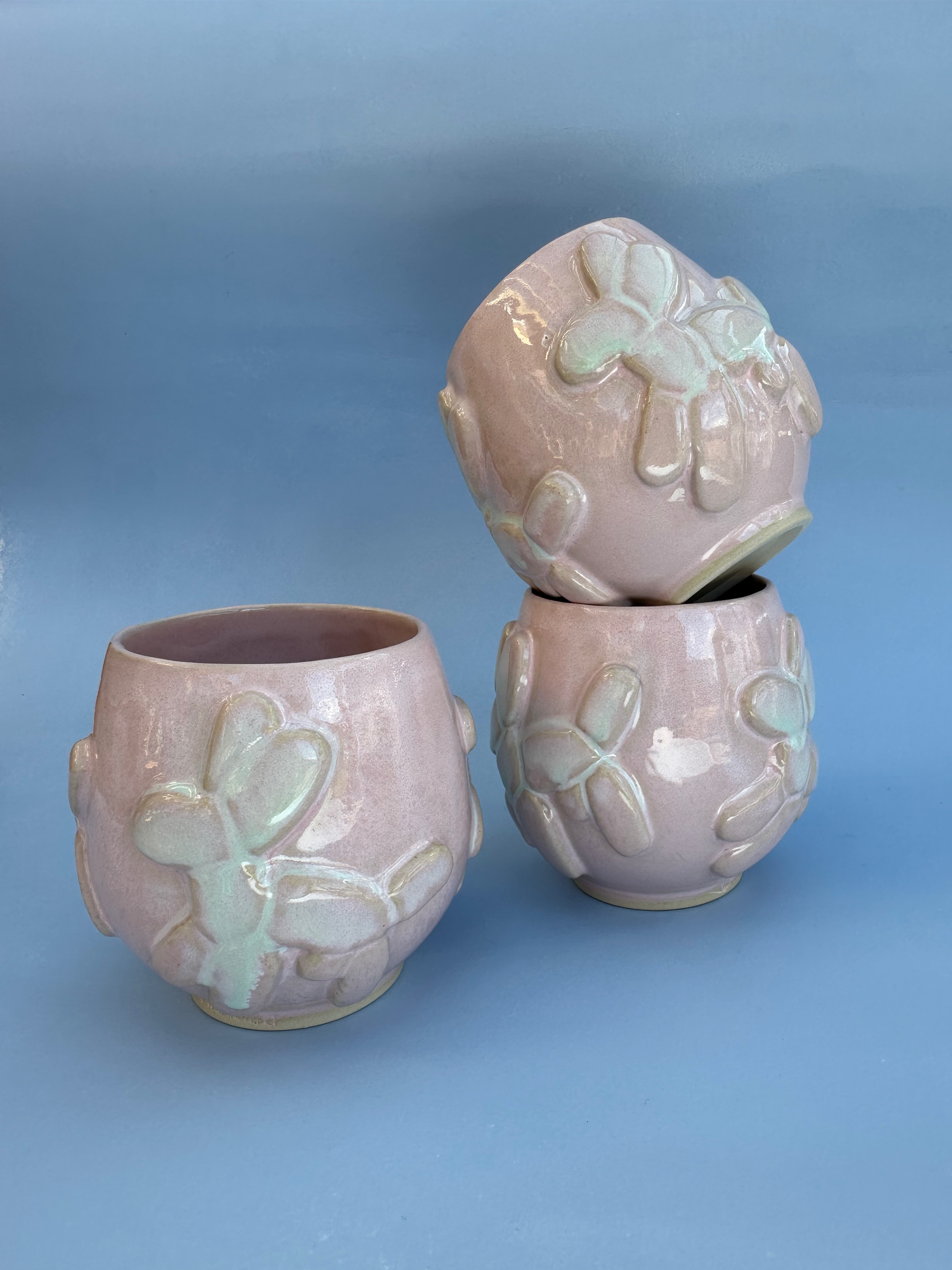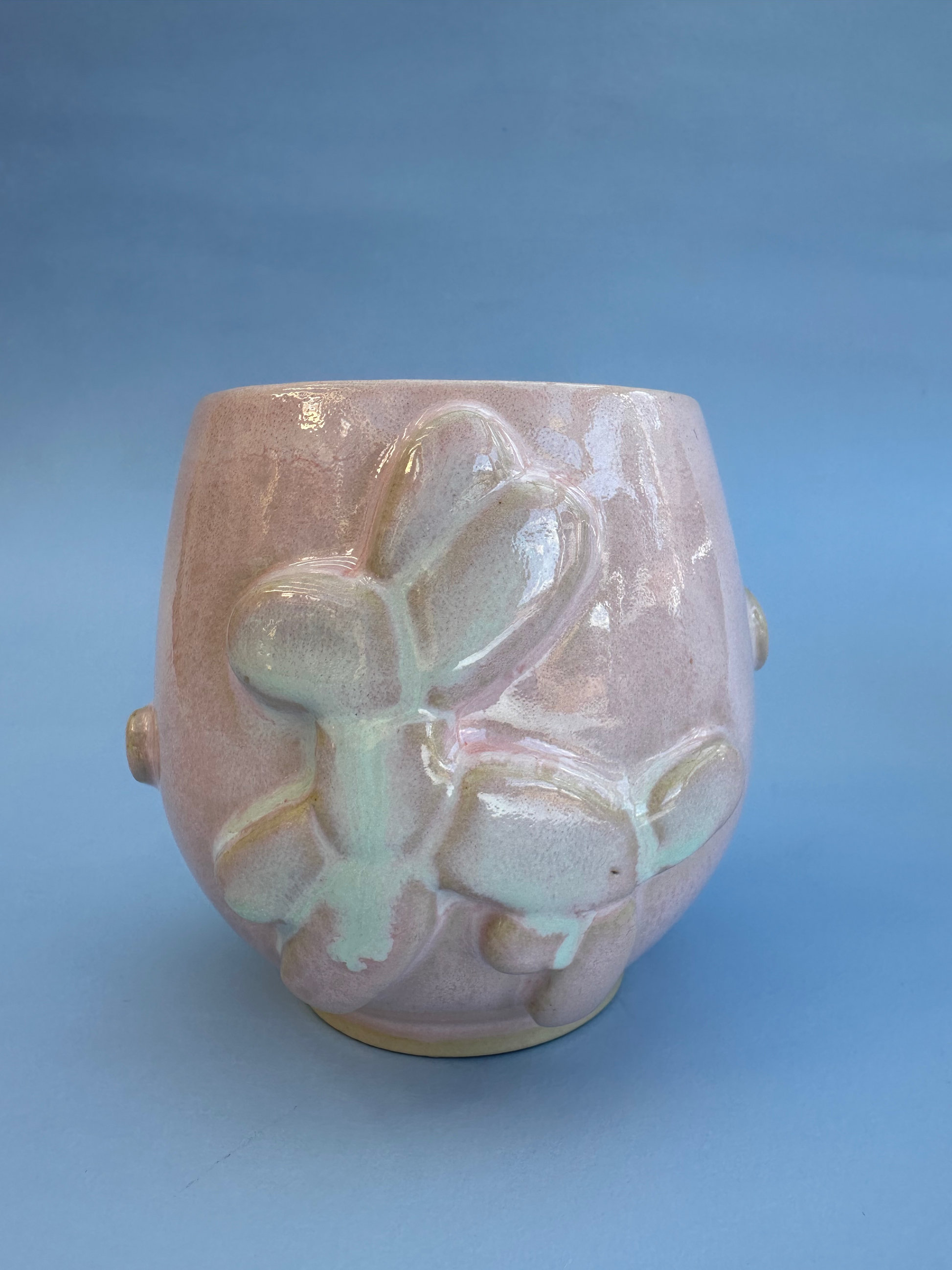 En smuk kop med ballonhunde. Hver kop varierer i glasering og udformning og har derfor hvert sit unikke udtryk.