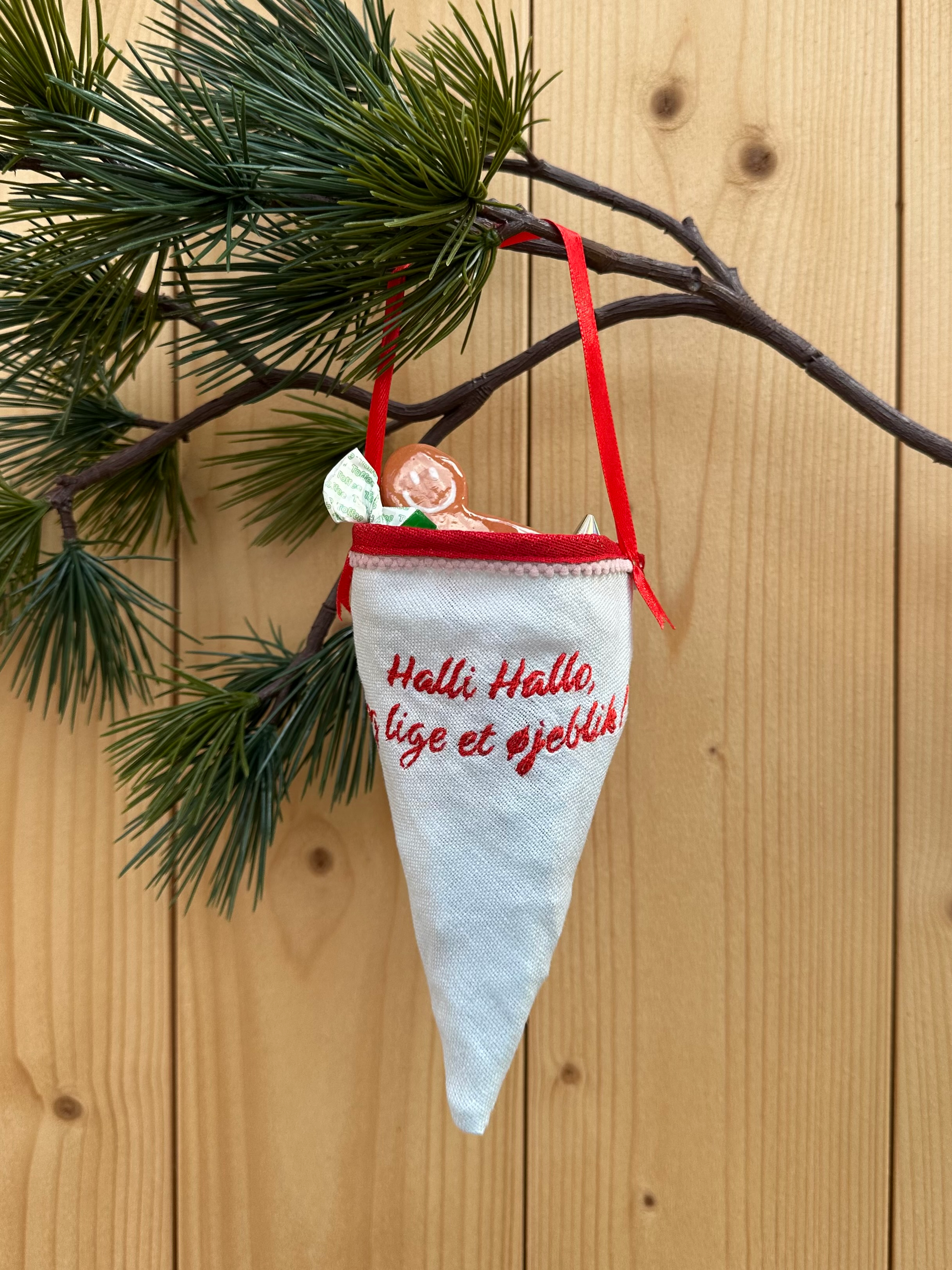 Stofkræmmerhuse, med fransk søm indeni, broderi og hanke, der er syet på i hånden.