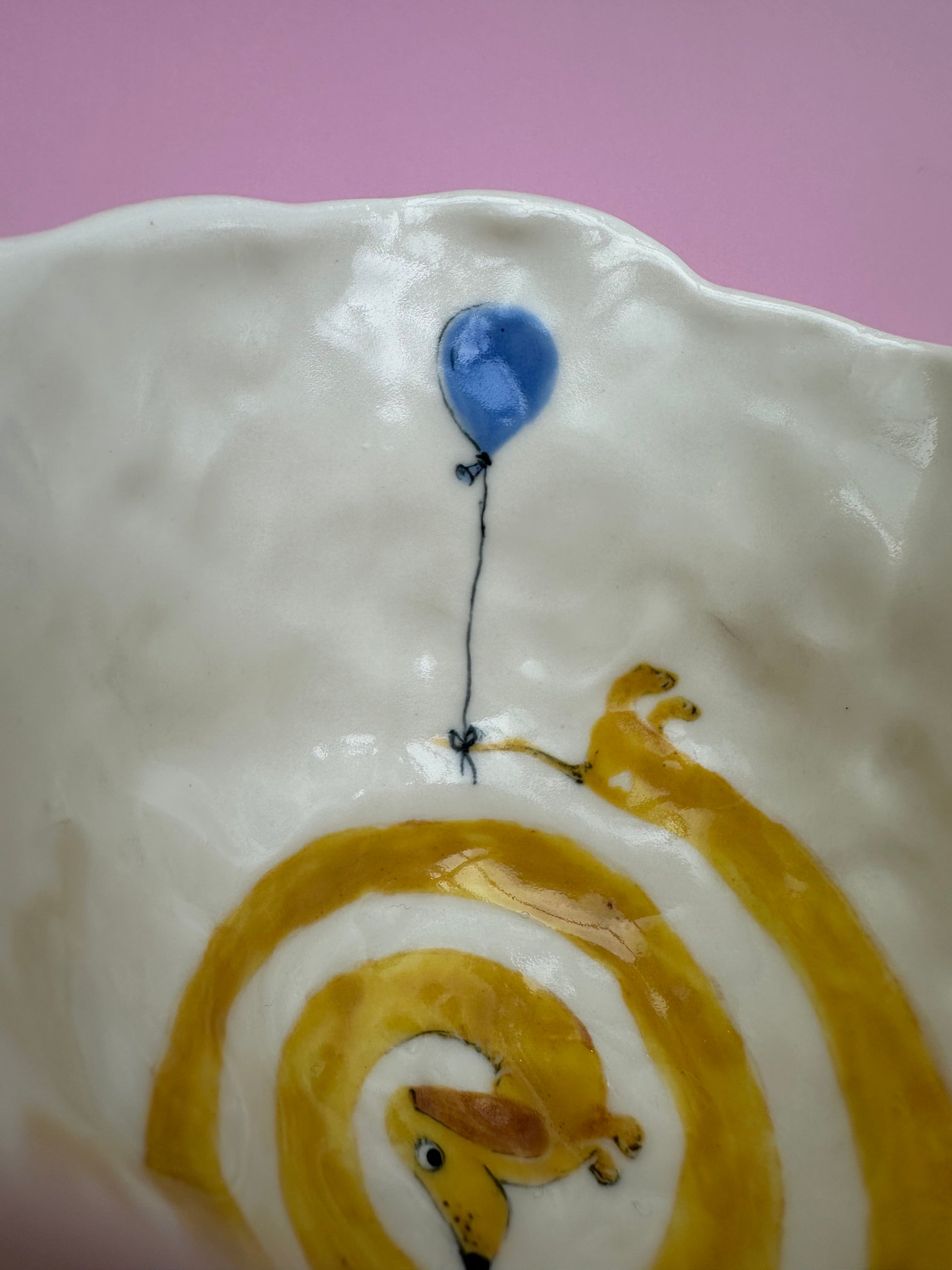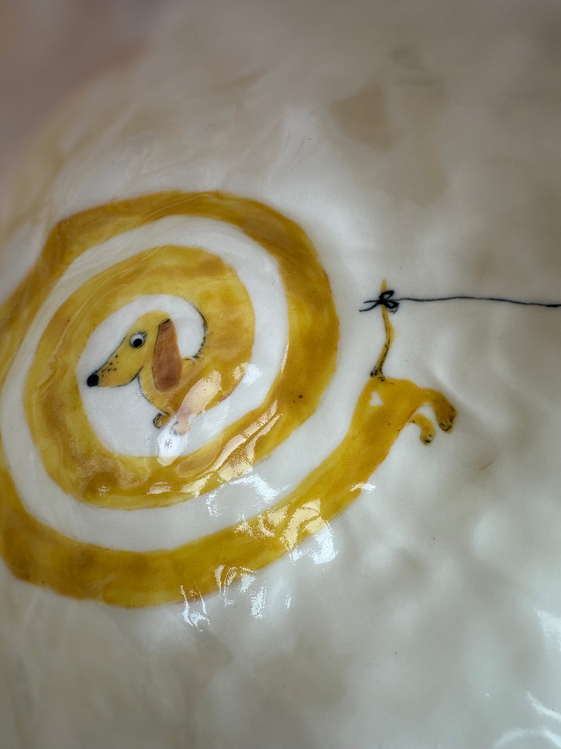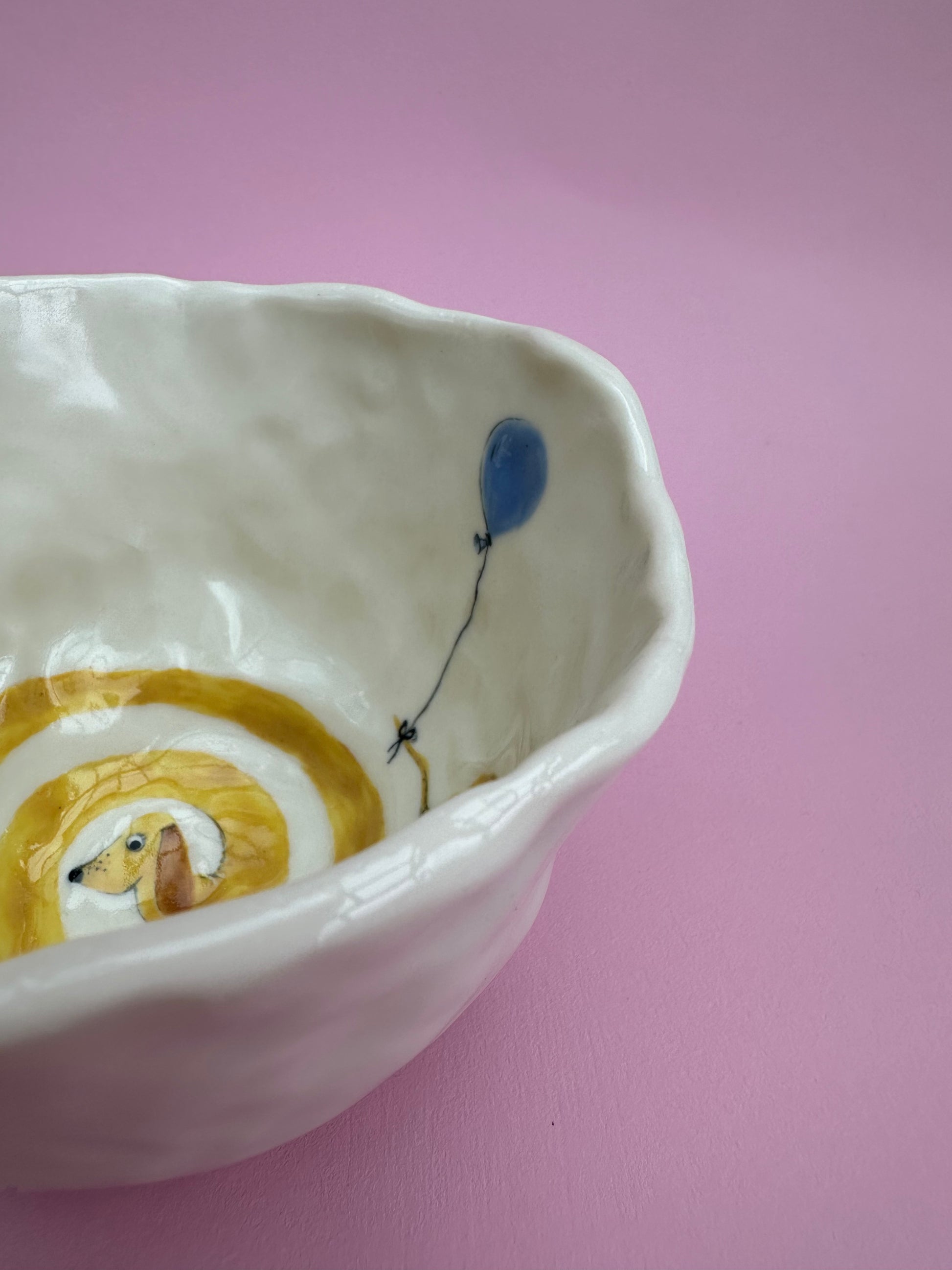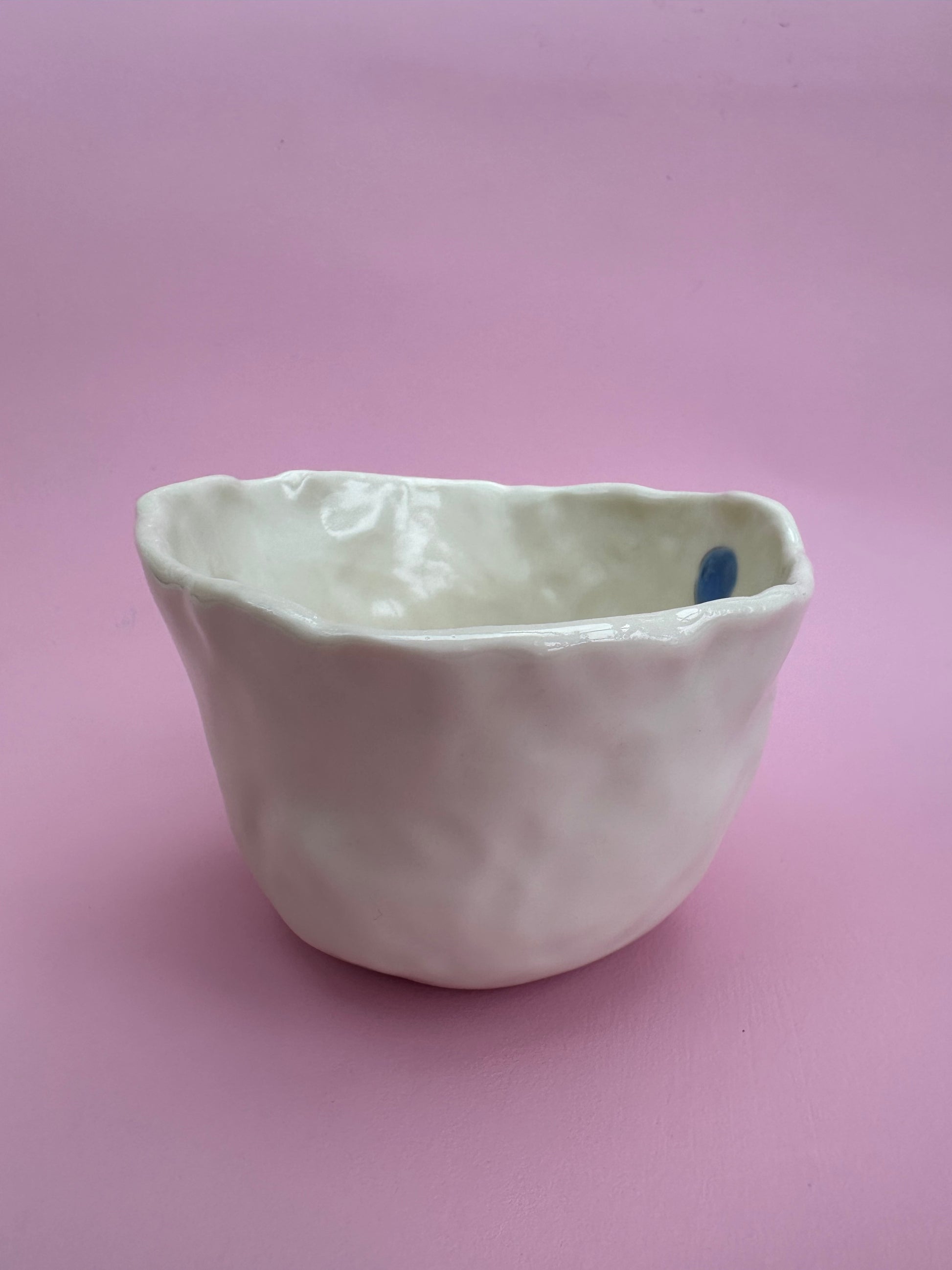 Mål: ca. 8 cm. høj og 11,5 cm. i diameter. Glaseret med fødevaregodkendt glasur og tåler opvaskemaskine.