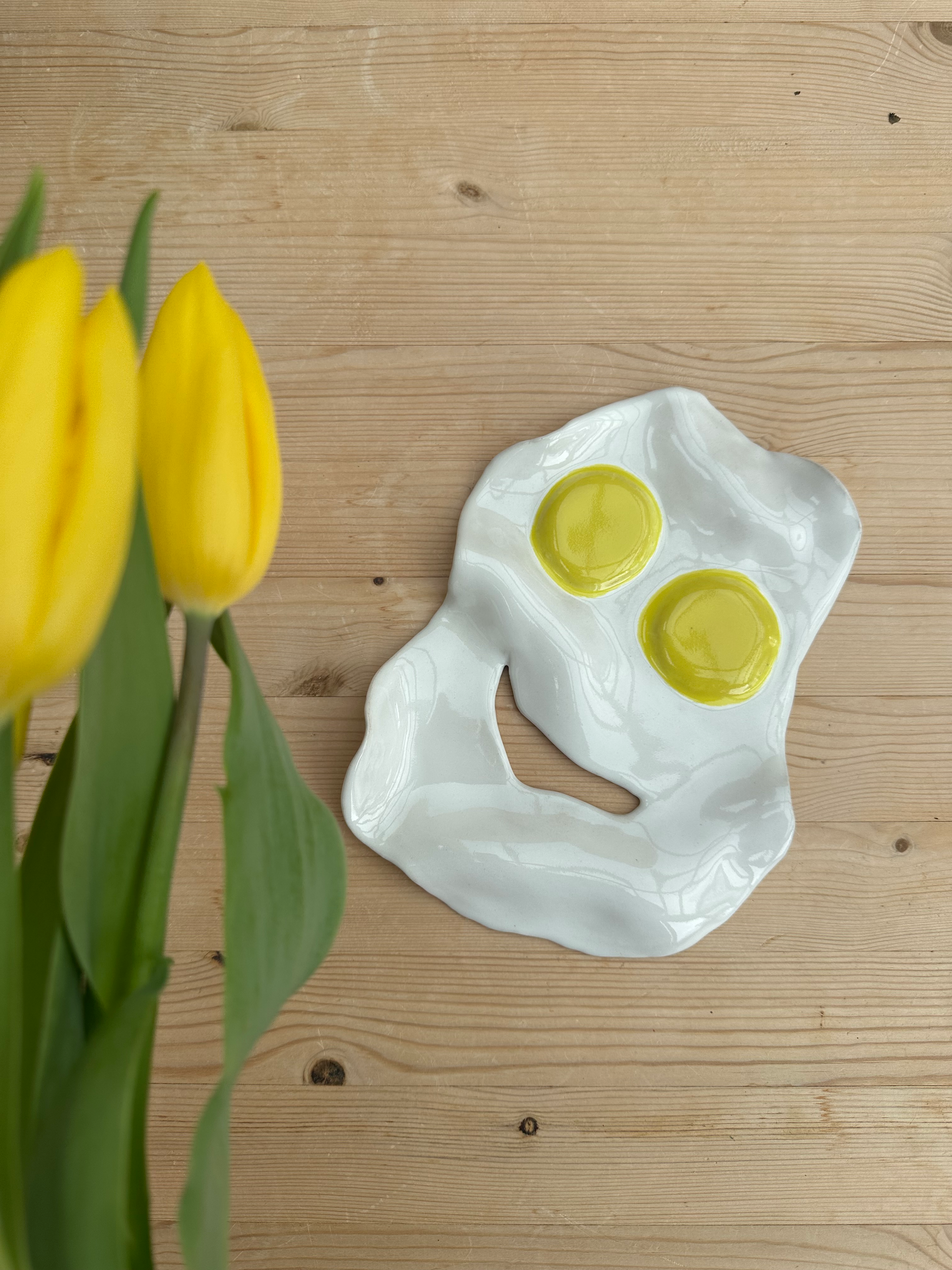 Glaseringen kan variere og hvert spejlæg er modelleret i hånden og efterfølgende håndmalet. Så trods lignende spejlæg, er dette helt unikt. Ikke to æg er ens.