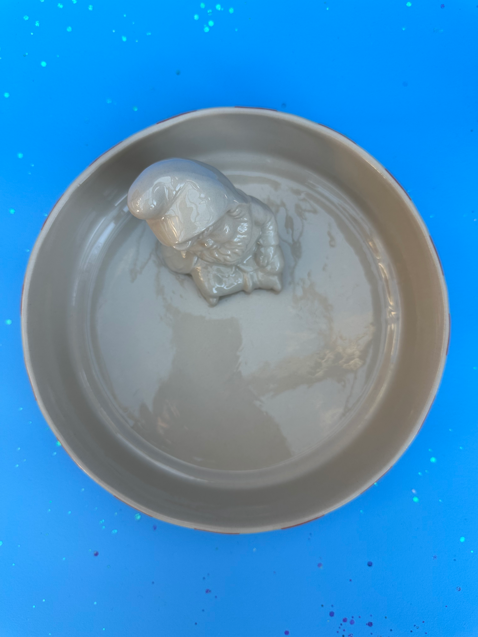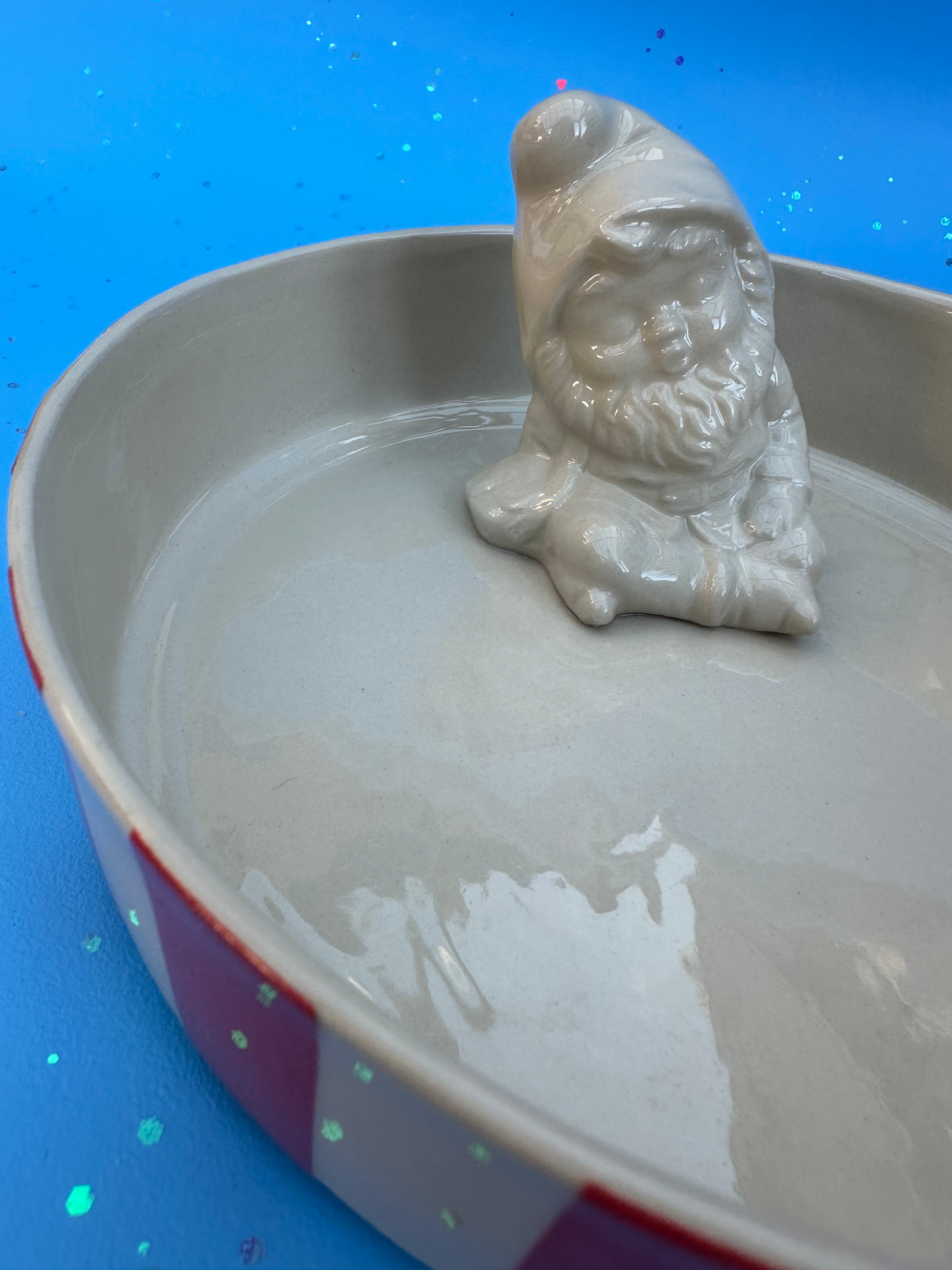 Stribet skål med sovende nisse